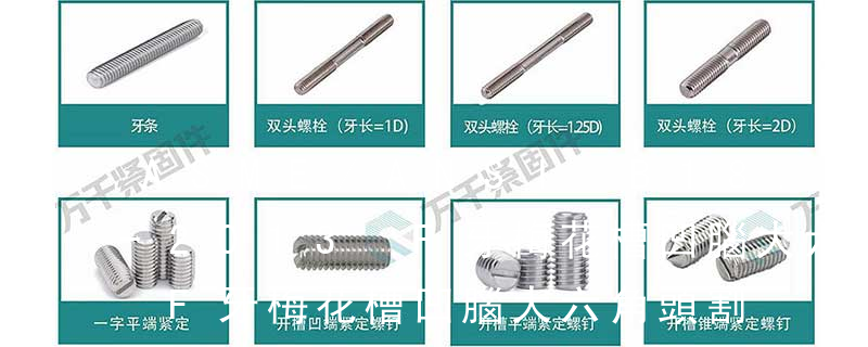 1.機螺釘 2.自攻螺釘 3.鉆尾螺釘 4.墻板釘 5.纖維板釘 6.木螺釘7.六角木螺釘 8.不脫出螺釘 9.組合螺釘 10.微型螺釘 11.家具螺釘 12.電子螺釘頭型:1.六角頭(hexagon head) 2.六角頭法蘭面(hexagon head with flange) 3.