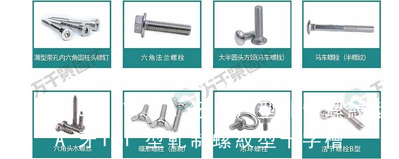 螺栓有:1、方頭螺栓,2、半圓頭方頸螺栓,3、十字槽盤頭螺釘,4、內六角沉頭螺釘,5、方螺母C級,6、蝶形螺母,7、六角頭螺栓,8、十字槽盤頭自攻螺釘。大小有M18、M6、M8、M16、M10、M12、M14、M20等型號。通常用