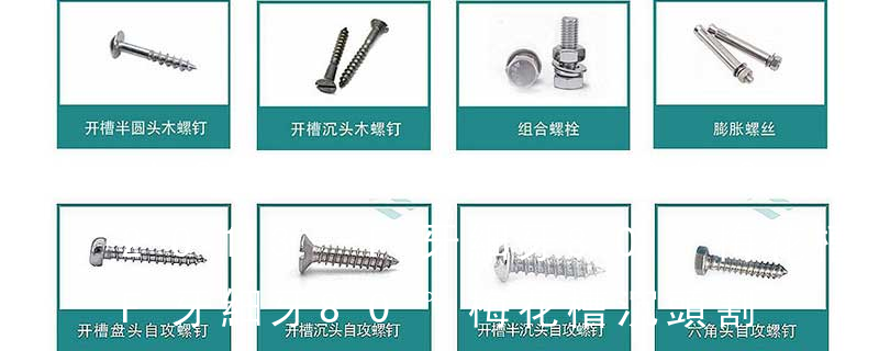 (鐵板牙自攻螺絲) B-2: Plastic Tapping Screw. (塑膠用,自攻螺絲) C: Wooden Screw : 木工螺絲 D: Drywall Screw :水泥墻螺絲 E: Self Drilling Screws鉆尾螺絲(不銹鋼鉆尾螺絲,復合材料鉆尾螺絲) F:膨脹螺絲,四片膨脹螺絲又